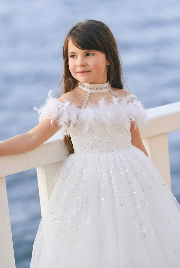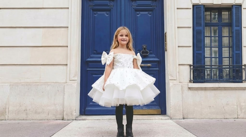 Robe Tutu Fille Bleu Perlé – Robe Princesse Enfant Tulle & Perles